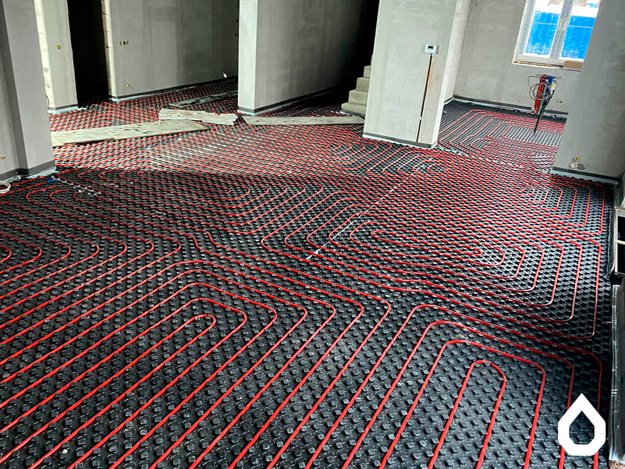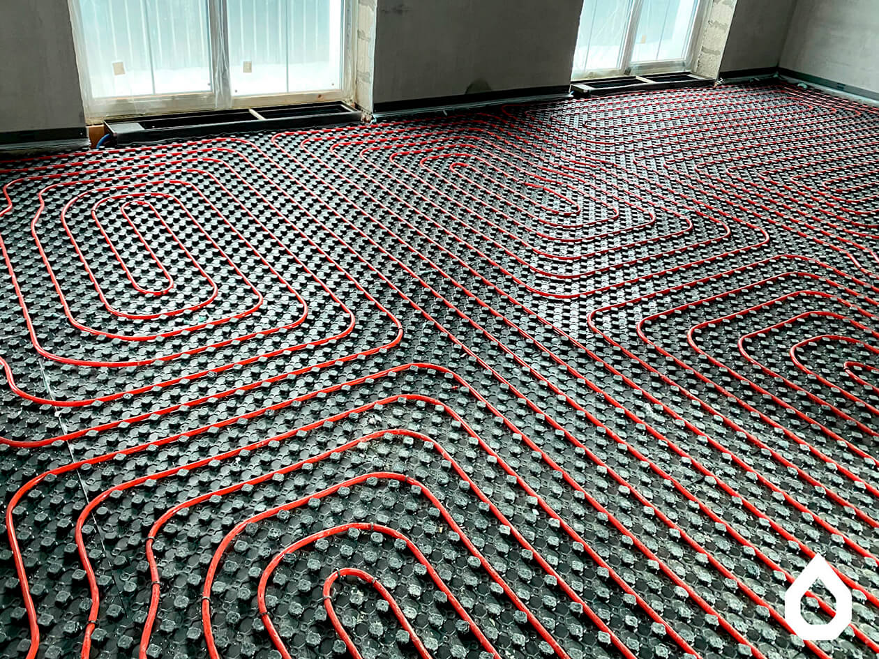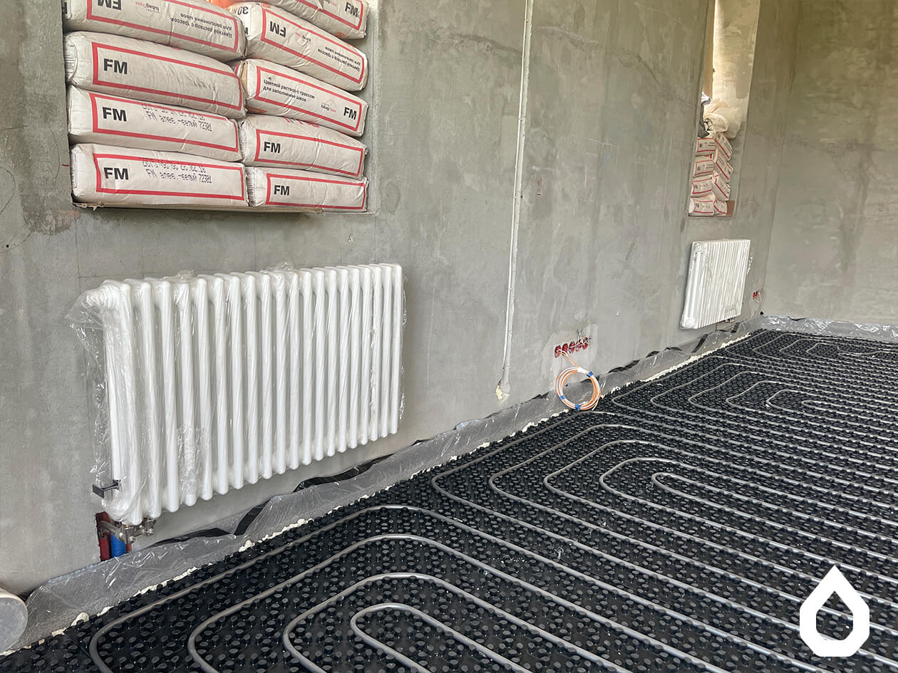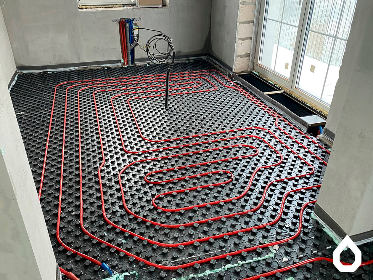 Отопление внутрипольными конвекторами Itermic. Регулировка температуры термостатическими головками.