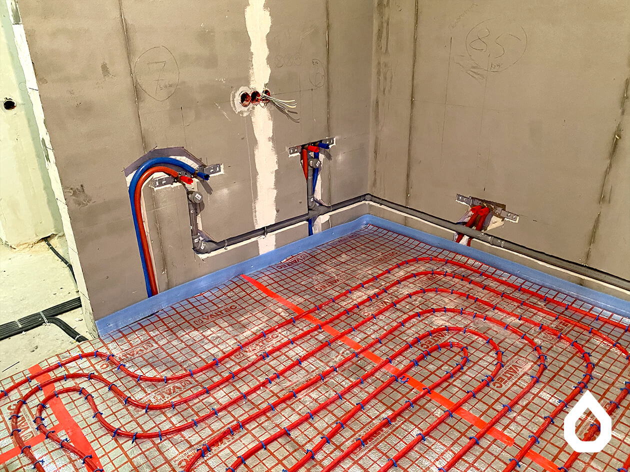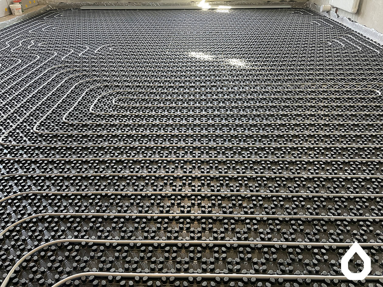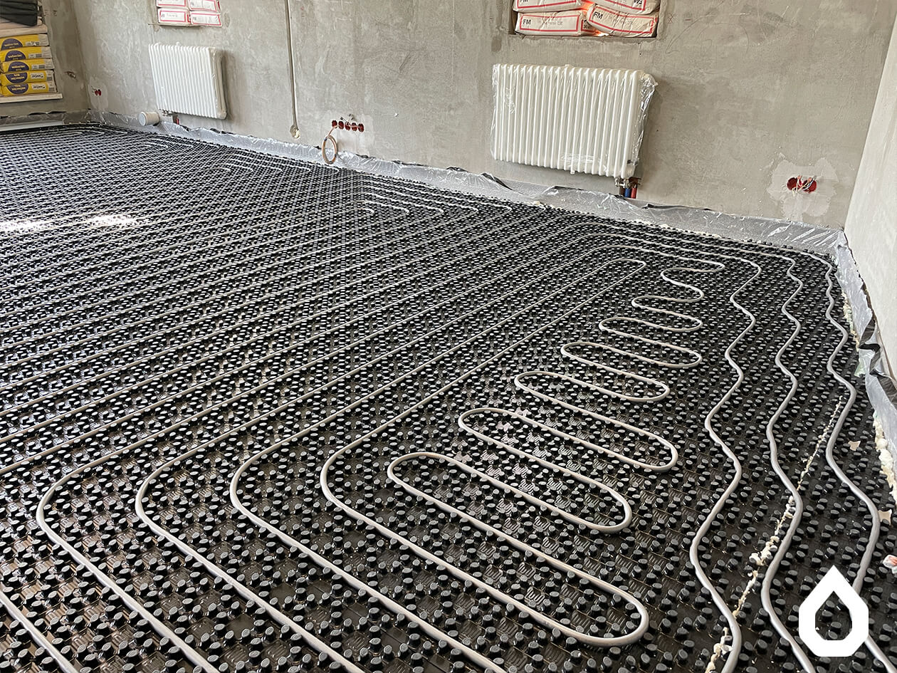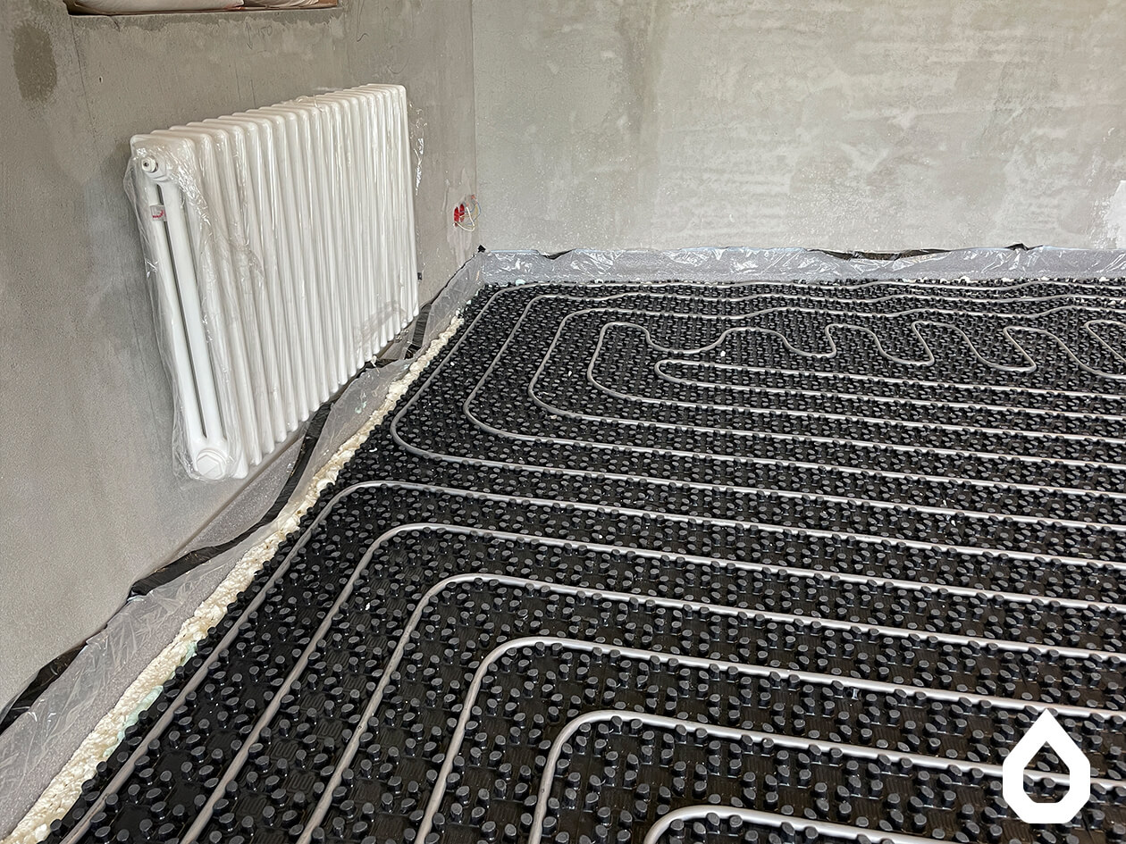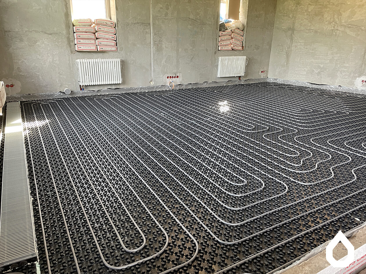 Отопление внутрипольными конвекторами Itermic. Регулировка температуры термостатическими головками.