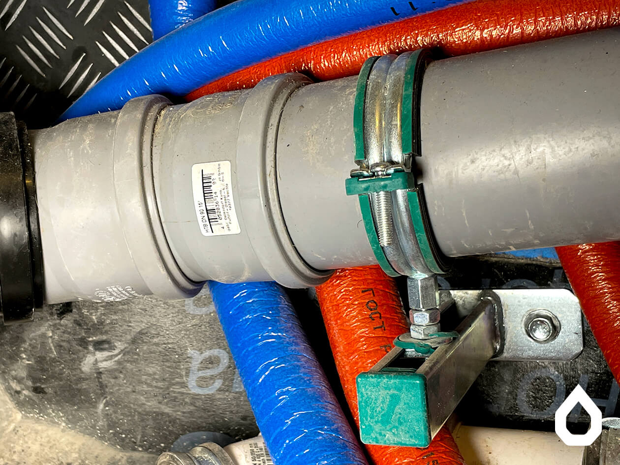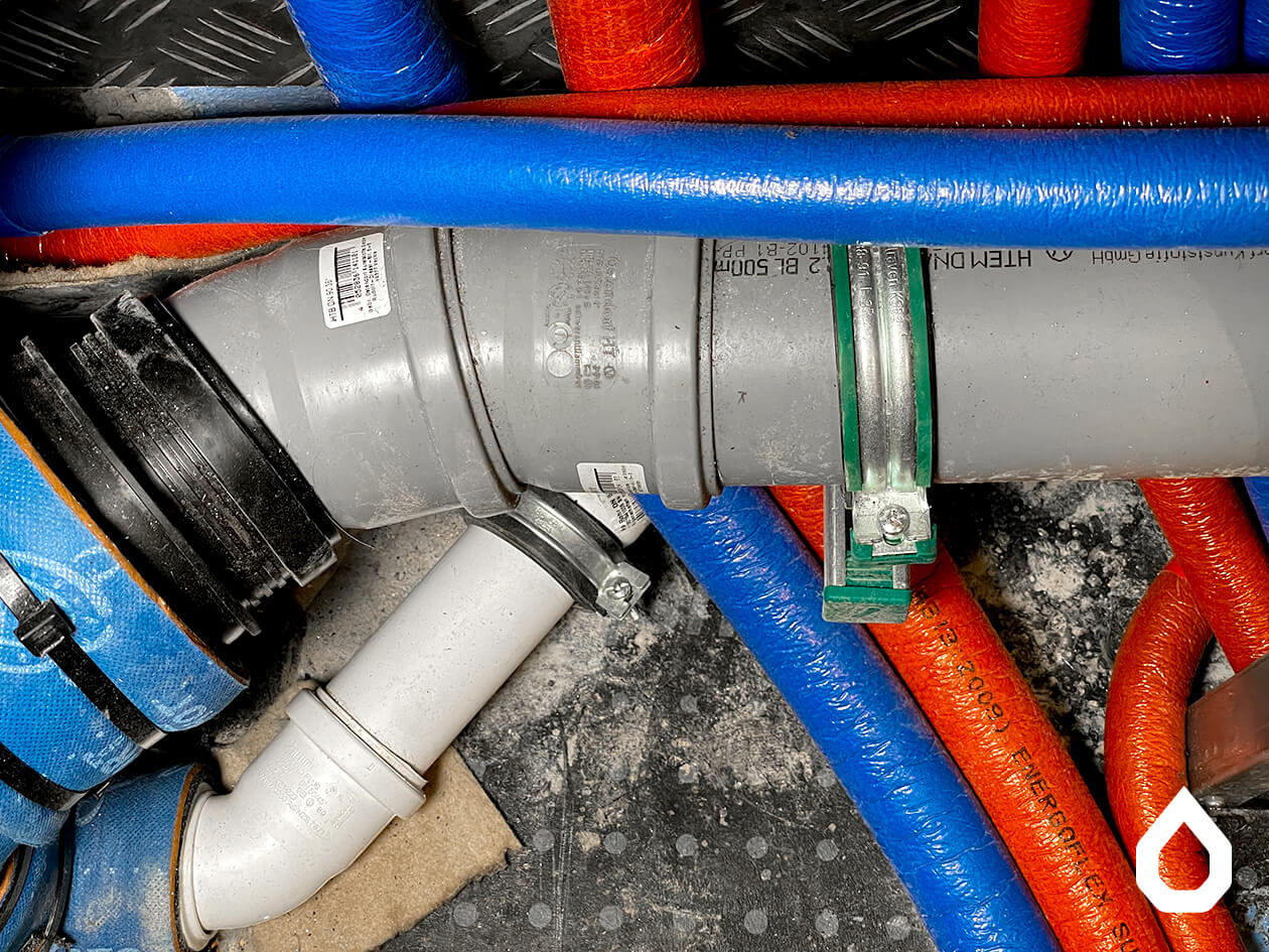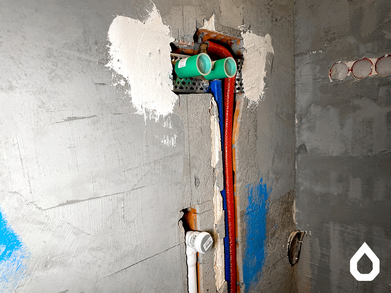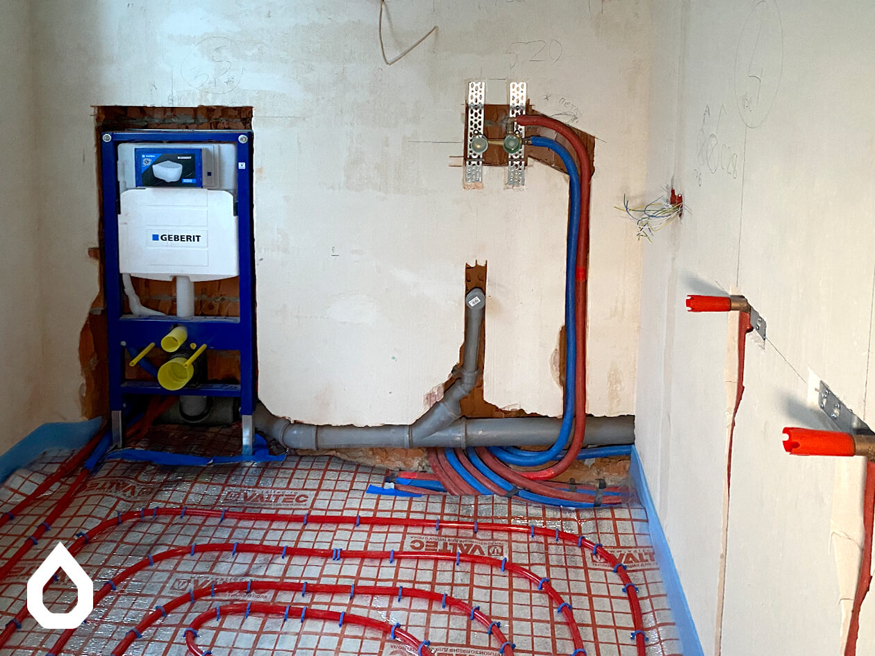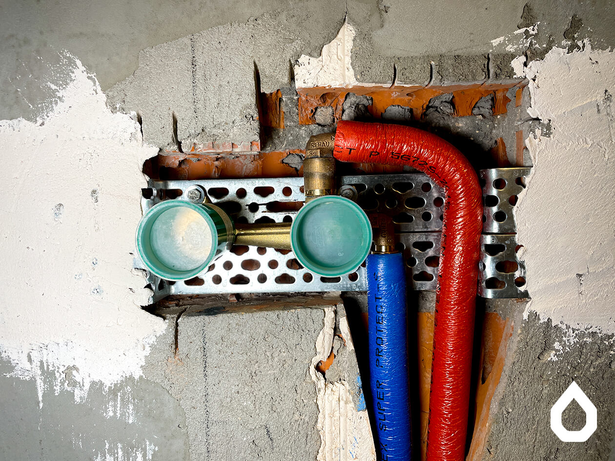 На узле ввода всё как мы любим — шаровый кран Oventrop «Optibal», защита от протечки Neptun, косой фильтр ITAP, редуктор давления FAR ВР-ВР с манометром, обратный клапан ITAP и фильтр тонкой очистки FAR. Поставили трубы ТЕСЕ и Rehau «RAUTITAN stabil». Коллекторы — FAR «MULTIFAR» 1 × ¾. Канализация из Rehau и Ostendorf.