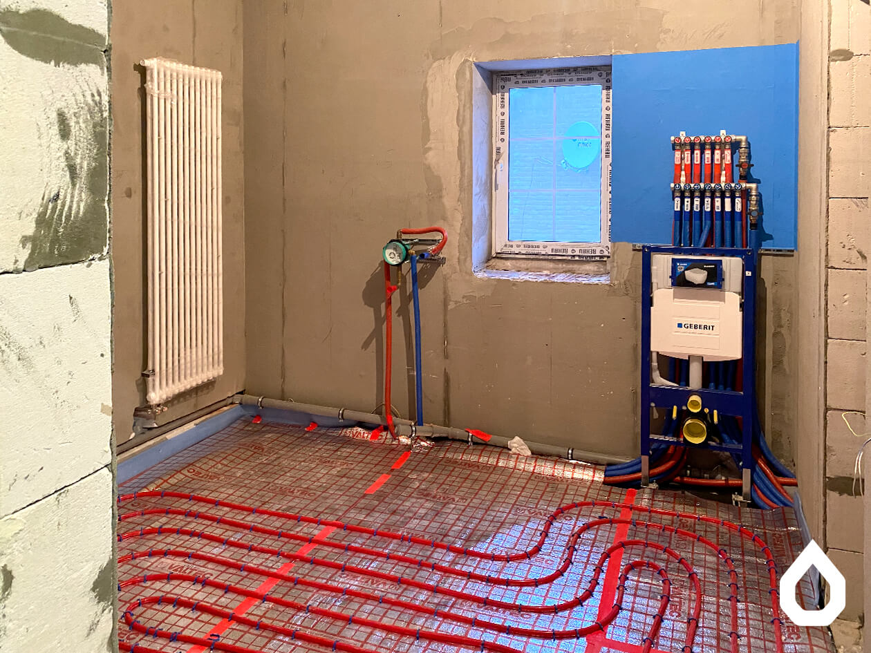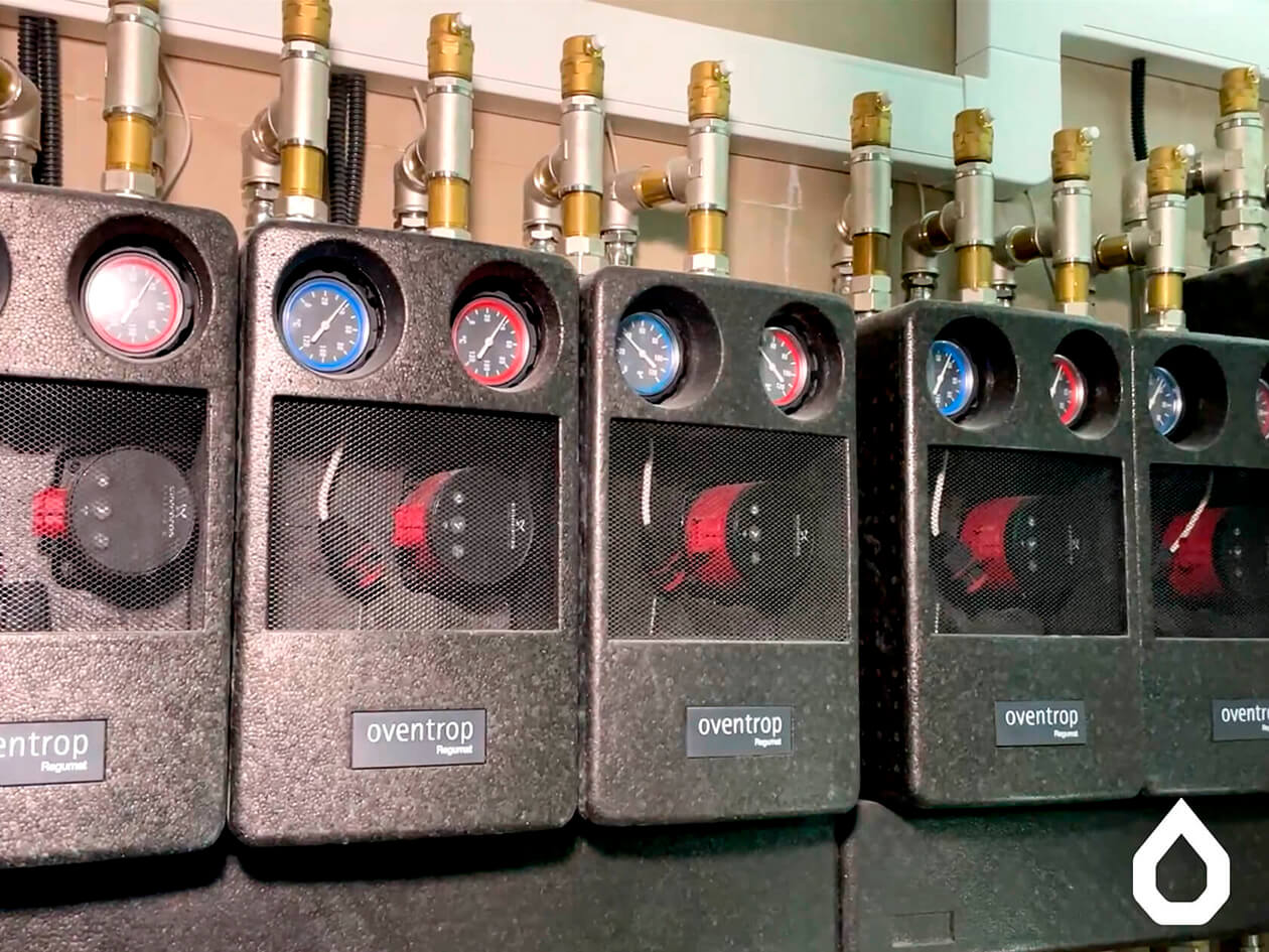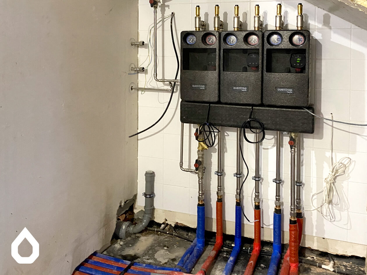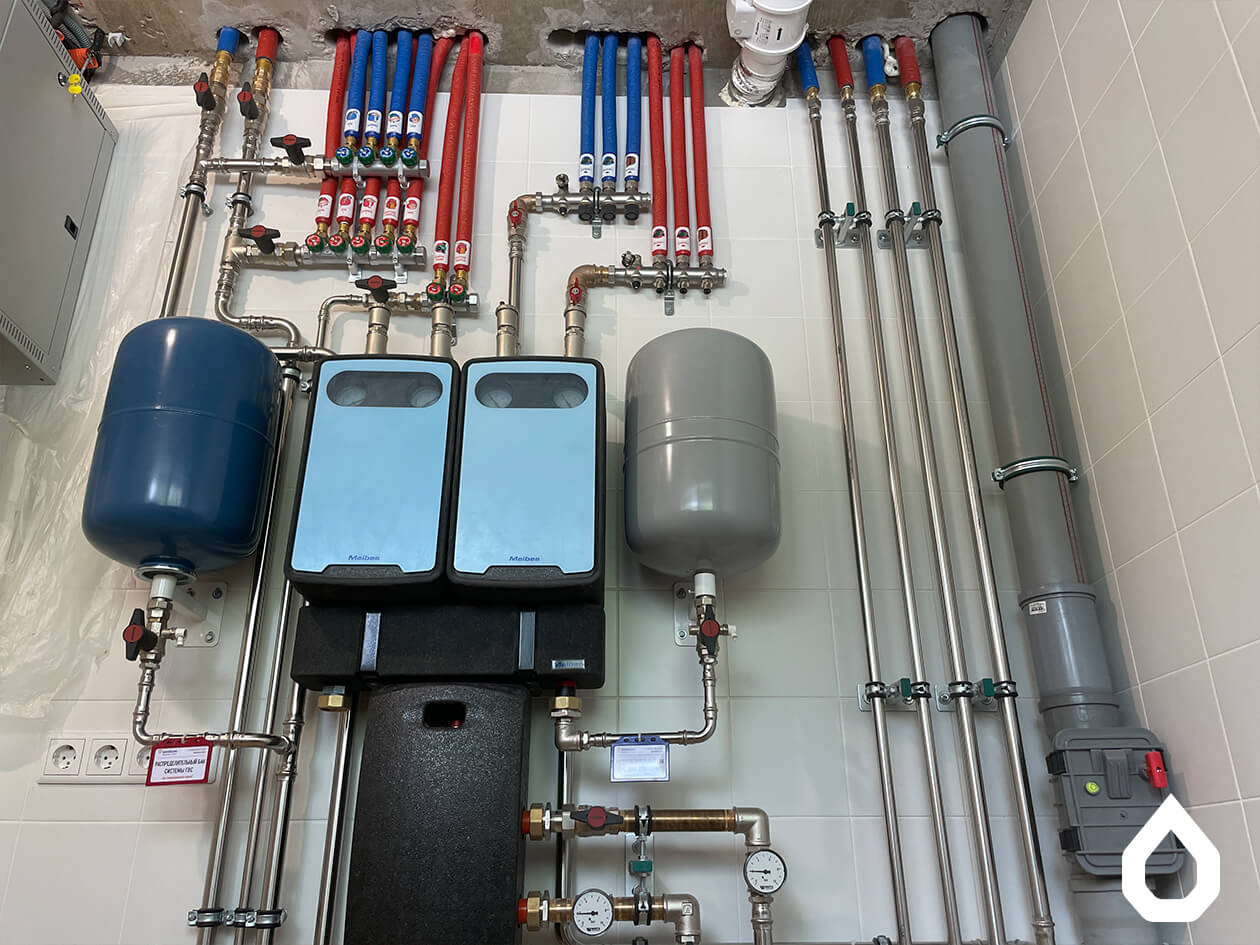 Для отопления квартиры установили конденсационный котел Viessmann Vitodens 100-W тип B1HF на 25 кВт. Котел управляется через мобильное приложение ViCare. Загрузка контуров радиаторного отопления и теплого пола осуществляется прямой насосной группой Stout DN25.